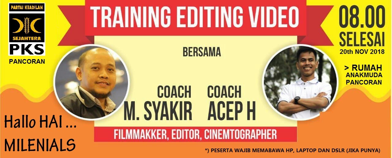 Unit Anak Muda PKS Pancoran, yang diketuai sama Bang Ishak kembali akan menggandeng anak muda milenial dalam acara pelatihan membuat video hreatif lewat handphone. Pelatihan berlangsung sehari pada tanggal 20 november 2018 di rumah Anak Muda Pancoran.
